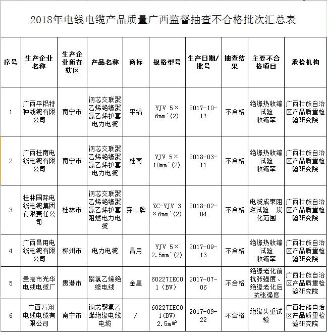 無(wú)獨(dú)有偶廣西抽檢電線電纜6批次不合格